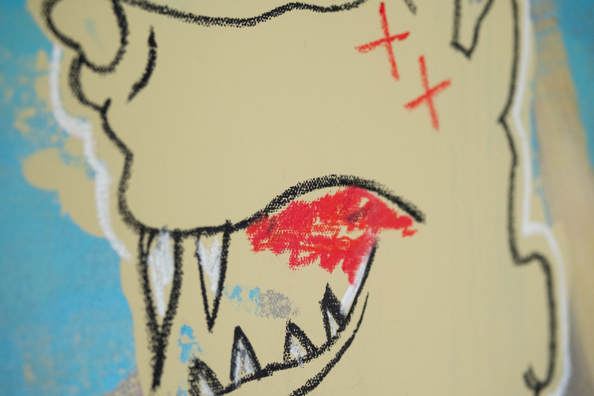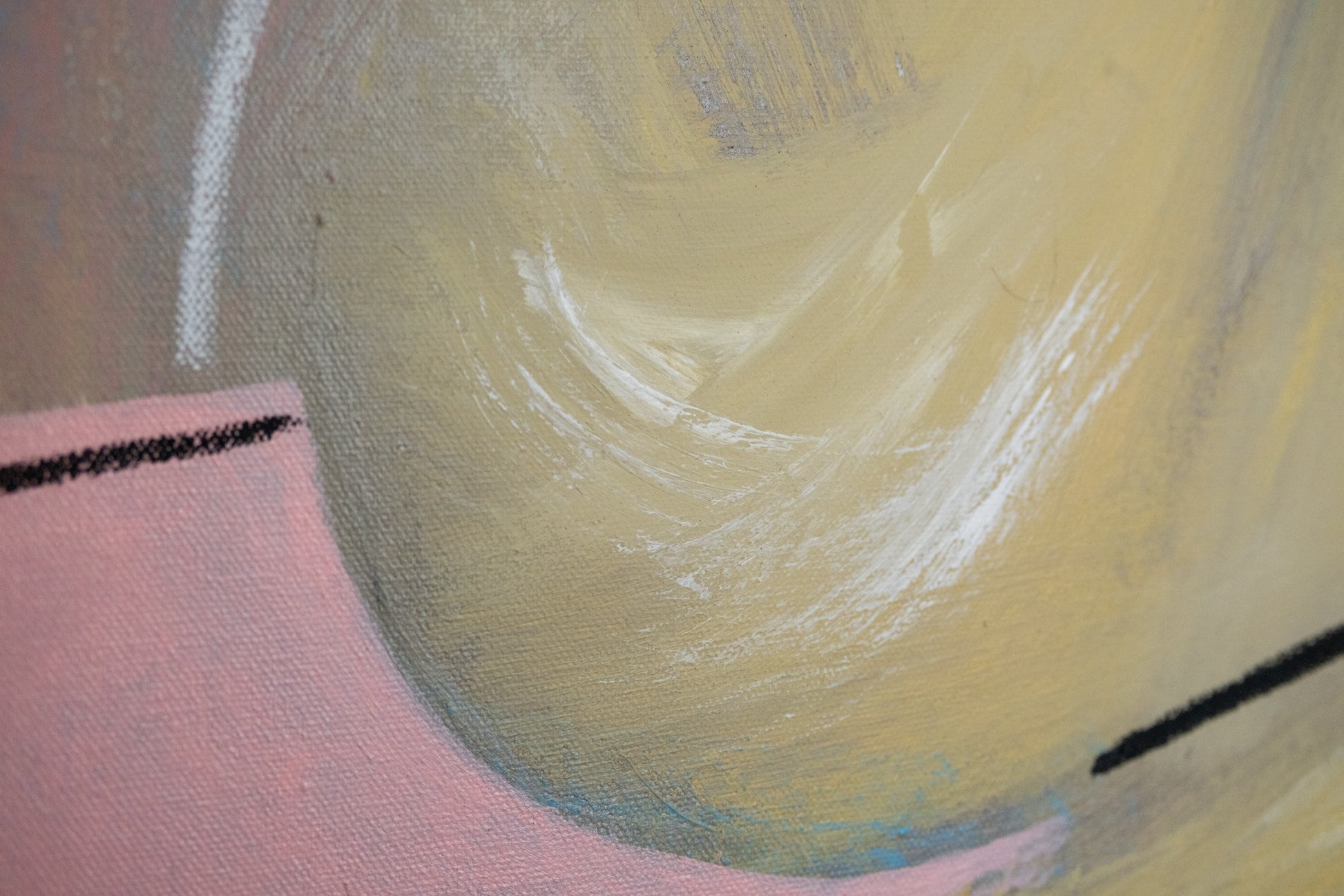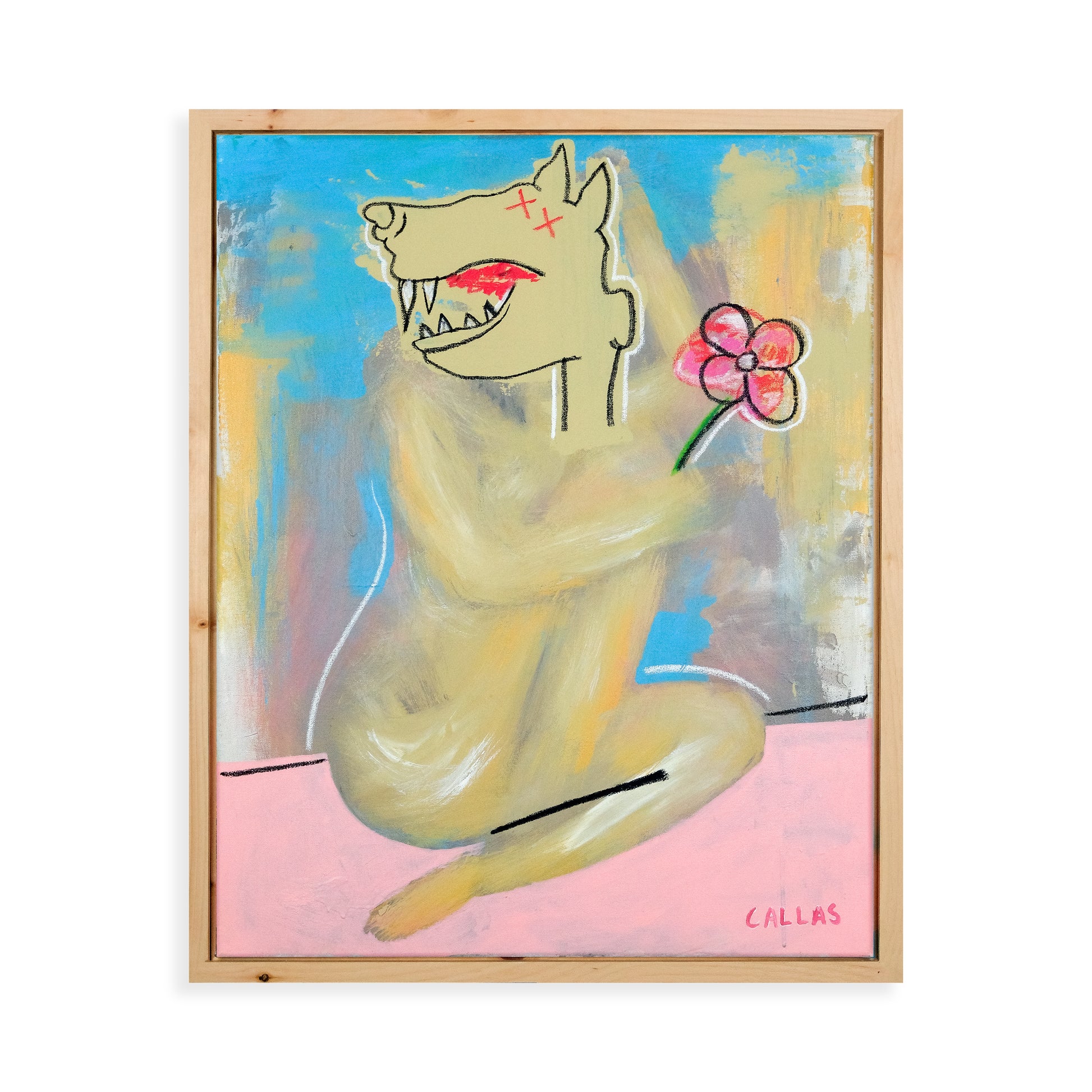 Acrylic and soft pastels on stretched canvas framed with natural stained whitewood.